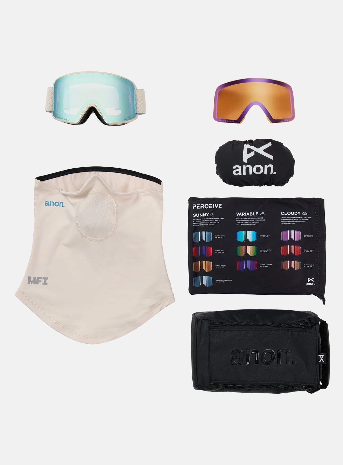 The Anon M6 Goggles offer a precise helmet-to-goggle fit with the wide field of view and low-profile design of a cylindrical lens. Our innovative Magna-Tech® quick lens-change technology uses powerful rare earth N52 magnets to make lens changes easier than ever. Perceive optics offer high-contrast, terrain-defining clarity. They feature our best anti-fog treatment for crystal-clear vision in a wide range of conditions. Full-perimeter venting plus moisture-wicking, ramped face foam creates a comfortable, form-fitting seal that supports fog-free clarity to anticipate every turn. Magnetic Face Mask Integration (MFI®) provides seamless face mask attachment. Includes a bonus Perceive lens so you're prepared for all conditions, plus a lightweight MFI face mask, microfiber goggle bag, and a Magna-Tech goggles storage case, and an elastic lens protector.